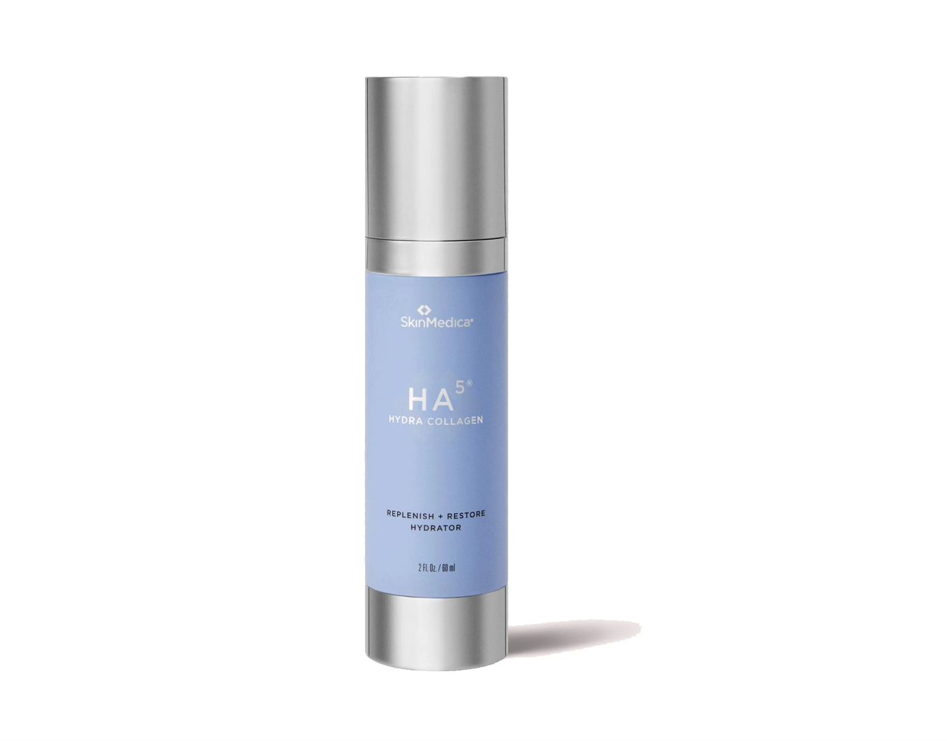 - HA⁵® Hydra Collagen Replenish + Restore Hydrator attracts and retains water for instant hydration and visibly plump, smooth skin